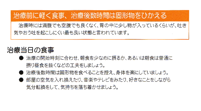 治療前に軽く食事,治療後数時間は固形物をひかえる