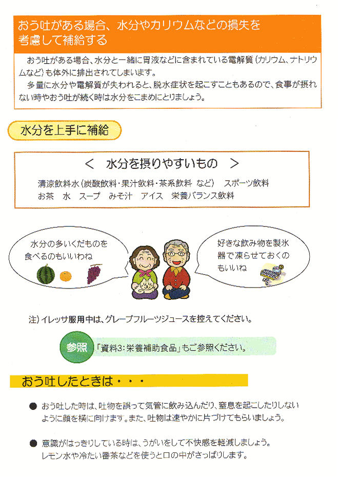 おう吐がある場合,水分やカリウムなどの損失を考慮して補給する