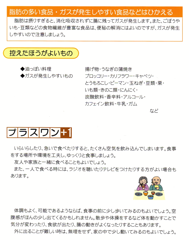 脂肪の多い食品・ガスが発生しやすい食品などはひかえる